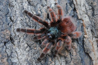 And here we have one of the true classics of the modern T hobby, the Avicularia versicolor. In case you venture as to why this is so, you get a spiderling that only gets better with age. It begins as a light blue bodied beauty with a black toches (thought I’d say booty didn’t you) and graduates to an all blue stunner to the astounding fluffy purple, green and red trifecta it reaches. Docile, easy, always hungry; they’re the perfect arboreal. Back in 2004, I produced a sac with the help of Jason Yanofsky, a dear friend of mine, that tallied 262 squirts, a record at that time. A few years later that record was broken and really broken by a total of 325 kidlins. And so it goes. They are an absolute joy to keep, and it is easily done with temps of 75-82 and humidity of 75%. There are rumors of a genus revision, so we’ll see what happens there. Update, the revision has taken place. They are now Caribena versicolor.